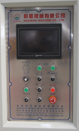 1.該機采用外方設計方案及自動系統,結合國內市場需求,該產品性能穩定,高產量、低維護。 2.該機選用標號鑄件、鋼材。軸承、電機、減速器等部件選用德國、日本、臺灣等品牌電器。 3.該機控制系統采用PLC終端控制,以液晶顯示觸摸屏終端為人機界面進行參數設定,設備運行過程中設有故障提示等等。該機適用于花崗石條板的連續磨削及拋光。板材輸送帶、磨盤橫移梁的工作速度均為變頻器調速;磨盤工作壓力、板材的磨削寬度在設定值范圍內可調。本機可對板材形狀自動識別,每個磨盤(磨頭)可根據識別板材的形狀自動升降,同時對板材磨削進行跟蹤記錄。性能穩定、故障率低等優點。
